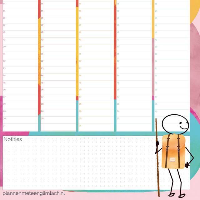 – Formaat kleurrijkejaarplanner: A2 (42 x 59,4 cm)